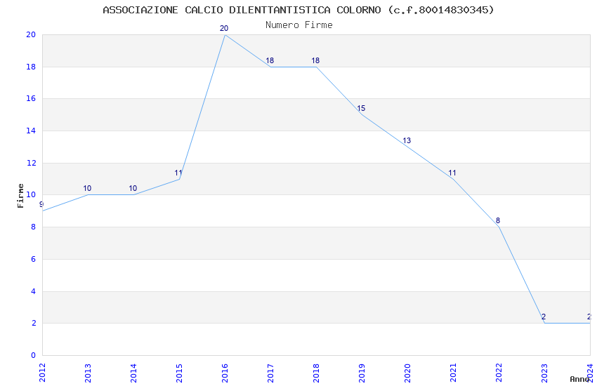 | 2016 | 20 | 2.019,00 | 100,95 | 22.622 | 1.970 | 251 | 4 |
