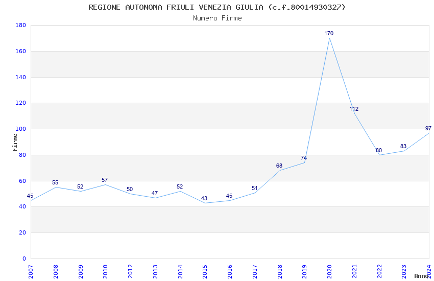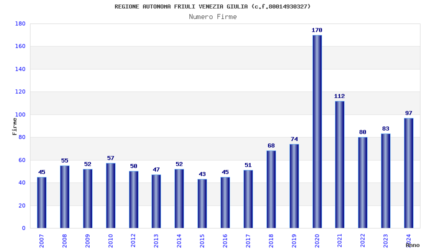 Anno Firme Importi Media Naz. Reg. Prov. Comu.
