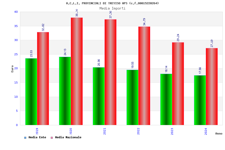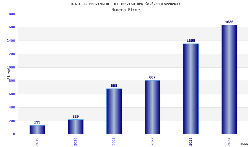 | Anno | Firme | Importi | Media | Naz. | Reg. | Prov. | Comu. |
