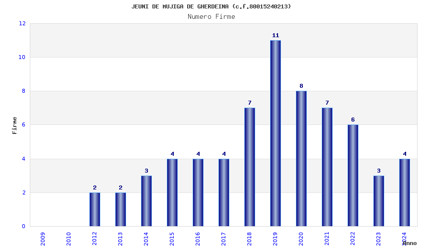 | Anno | Firme | Importi | Media | Naz. | Reg. | Prov. | Comu. |