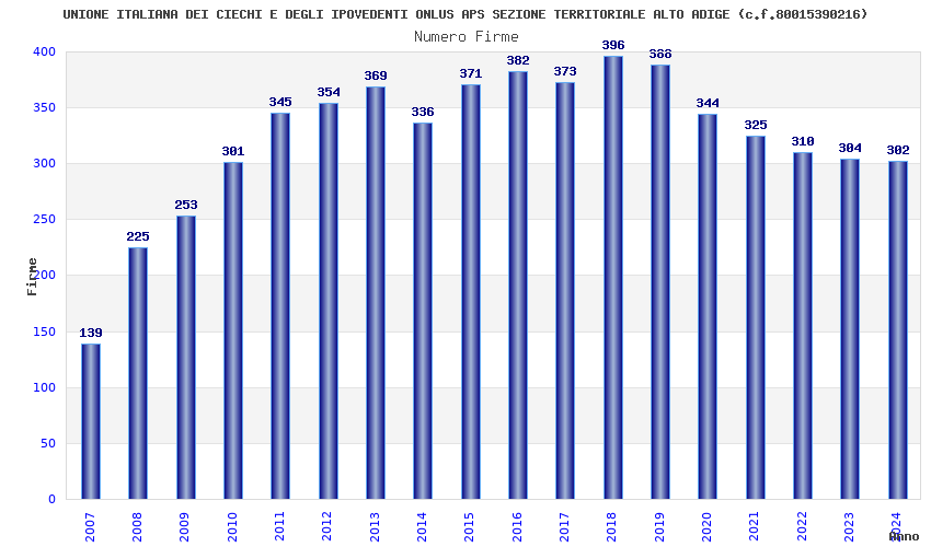 | Anno | Firme | Importi | Media | Naz. | Reg. | Prov. | Comu. |
