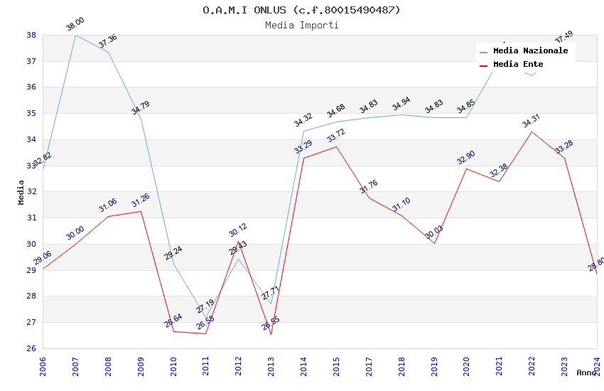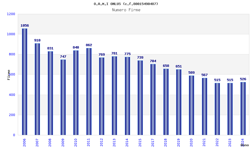 | Anno | Firme | Importi | Media | Naz. | Reg. | Prov. | Comu. |