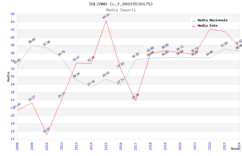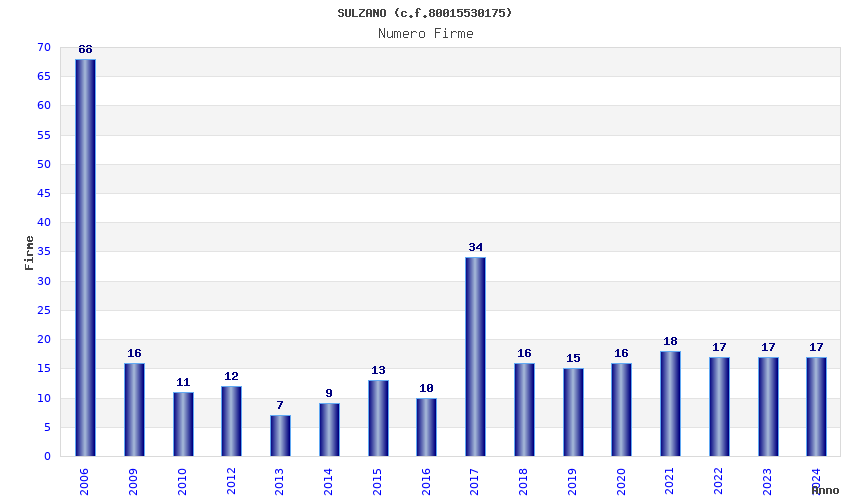 | Anno | Firme | Importi | Media | Naz. | Reg. | Prov. | Comu. |