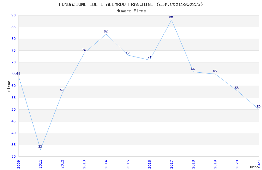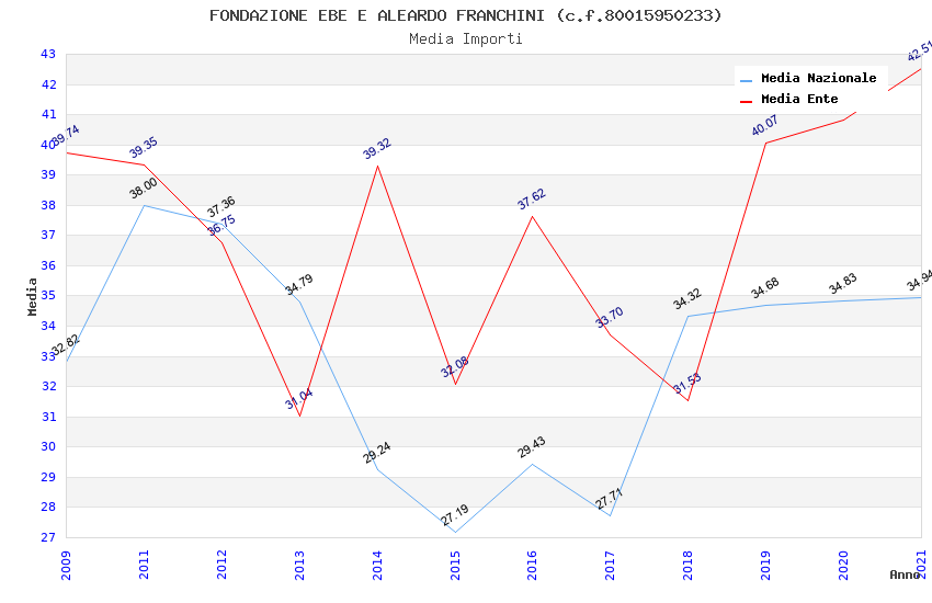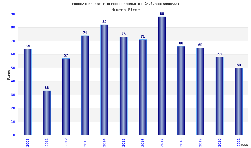 | Anno | Firme | Importi | Media | Naz. | Reg. | Prov. | Comu. |