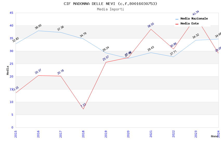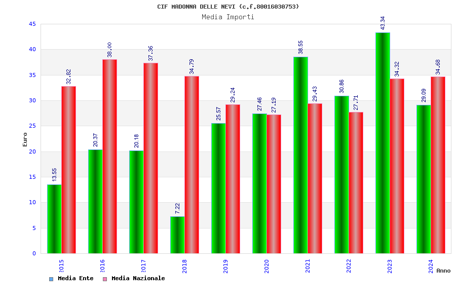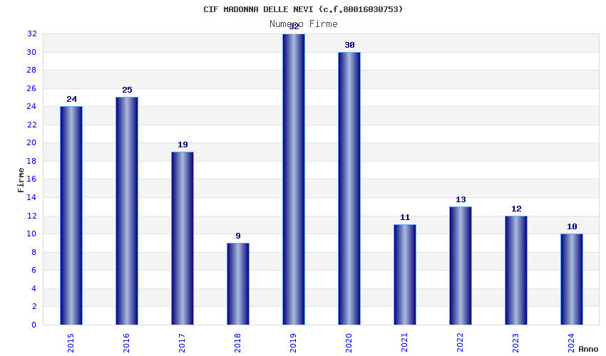 | Anno | Firme | Importi | Media | Naz. | Reg. | Prov. | Comu. |