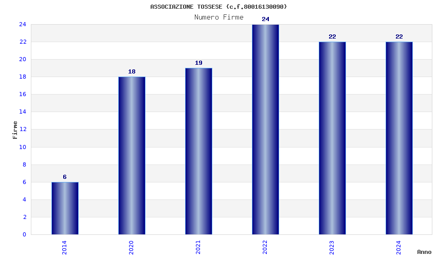 | Anno | Firme | Importi | Media | Naz. | Reg. | Prov. | Comu. |