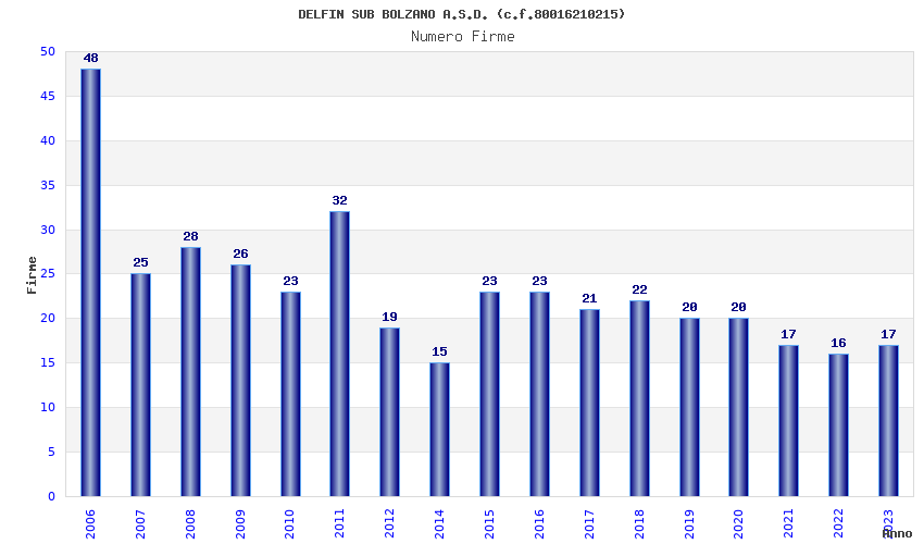 | Anno | Firme | Importi | Media | Naz. | Reg. | Prov. | Comu. |