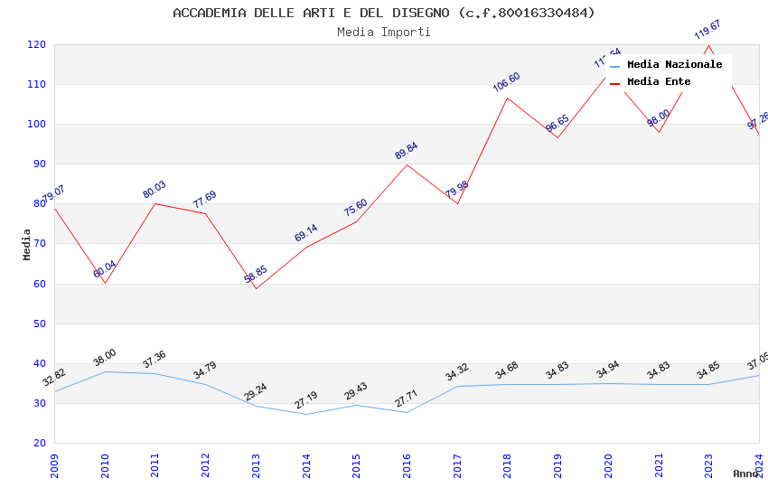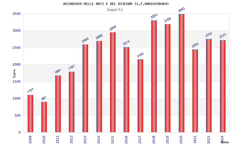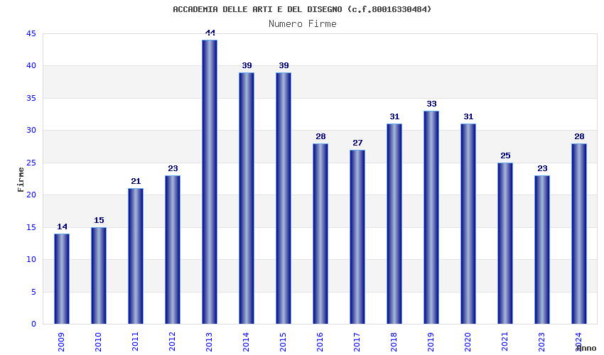 | Anno | Firme | Importi | Media | Naz. | Reg. | Prov. | Comu. |