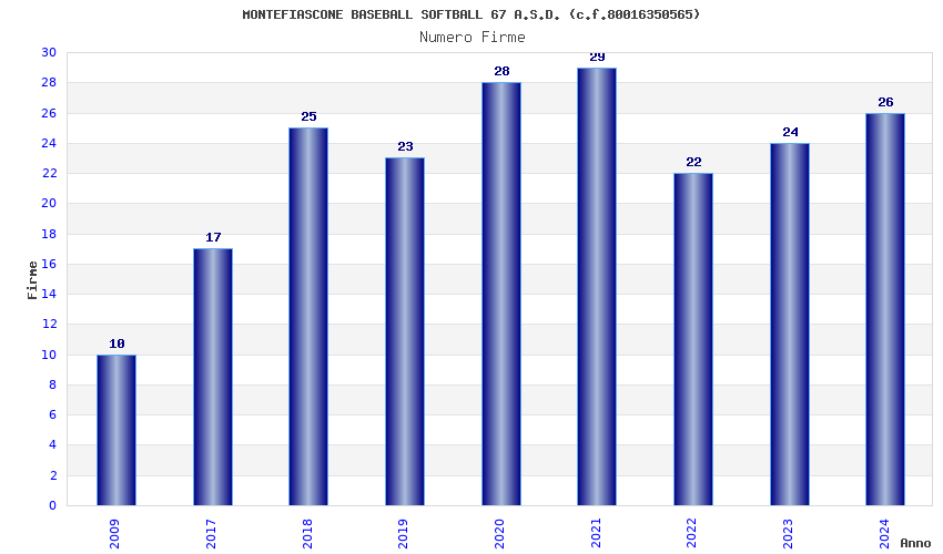 | Anno | Firme | Importi | Media | Naz. | Reg. | Prov. | Comu. |