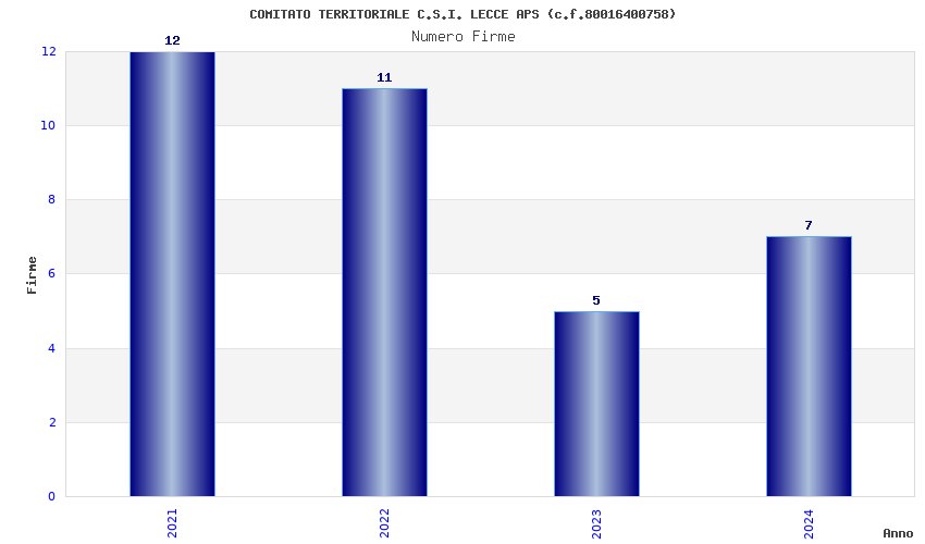 | Anno | Firme | Importi | Media | Naz. | Reg. | Prov. | Comu. |