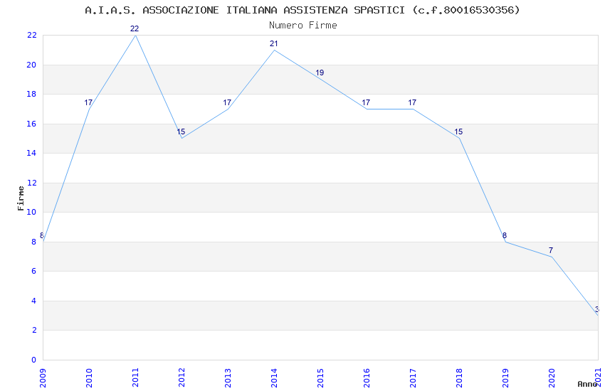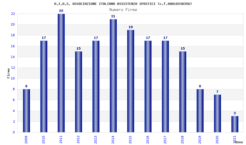 | Anno | Firme | Importi | Media | Naz. | Reg. | Prov. | Comu. |