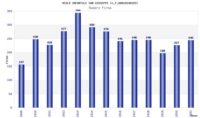 | Anno | Firme | Importi | Media | Naz. | Reg. | Prov. | Comu. |