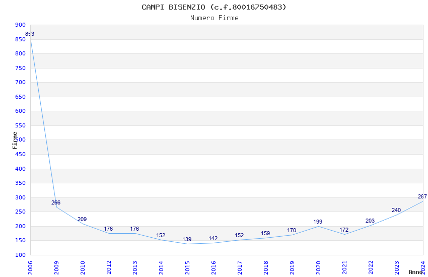 | Anno | Firme | Importi | Media | Naz. | Reg. | Prov. | Comu. |