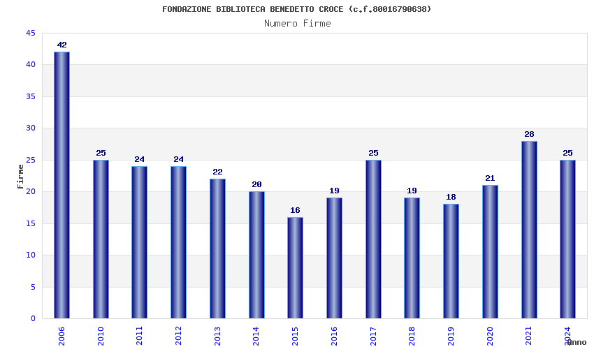 | Anno | Firme | Importi | Media | Naz. | Reg. | Prov. | Comu. |