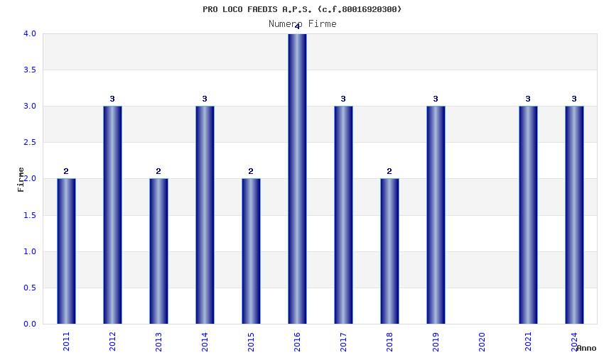 | Anno | Firme | Importi | Media | Naz. | Reg. | Prov. | Comu. |