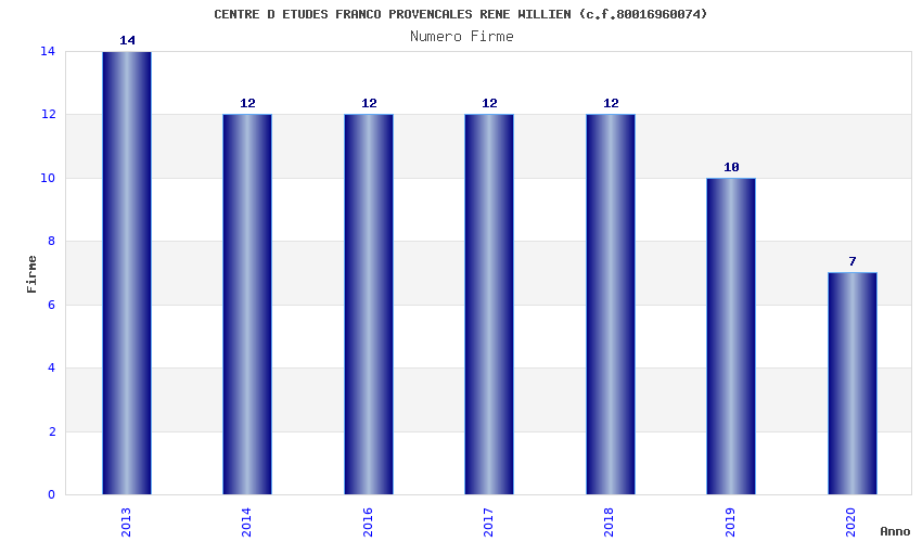 | Anno | Firme | Importi | Media | Naz. | Reg. | Prov. | Comu. |