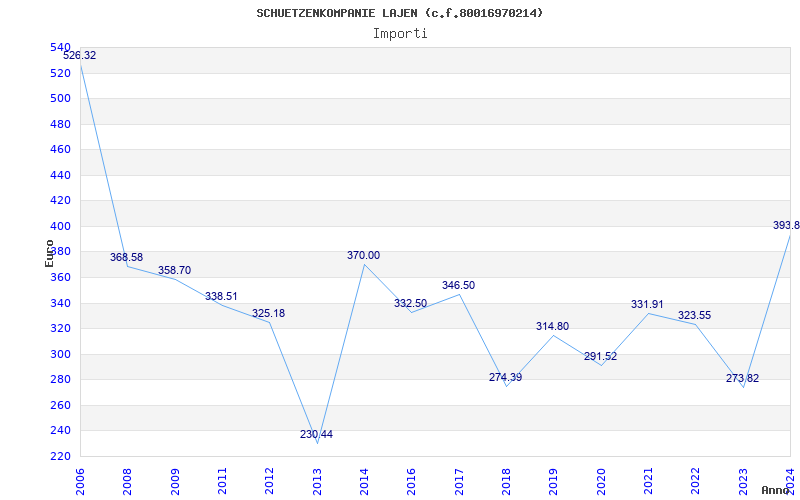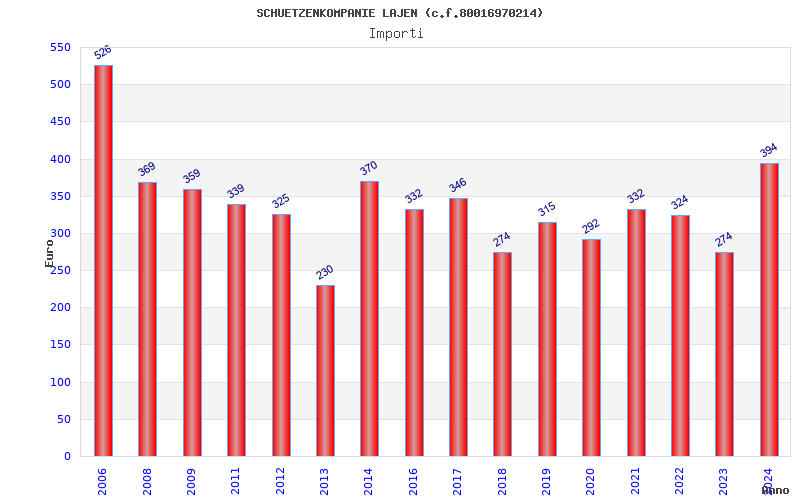 | Anno | Firme | Importi | Media | Naz. | Reg. | Prov. | Comu. |