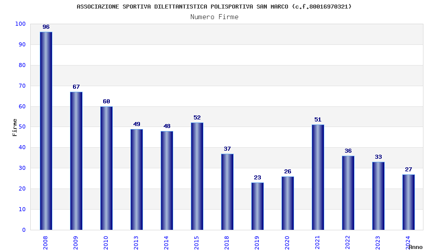 | Anno | Firme | Importi | Media | Naz. | Reg. | Prov. | Comu. |