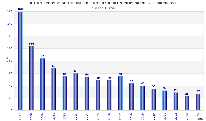 | Anno | Firme | Importi | Media | Naz. | Reg. | Prov. | Comu. |