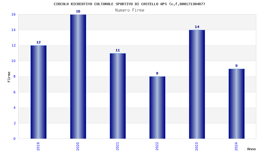 | Anno | Firme | Importi | Media | Naz. | Reg. | Prov. | Comu. |