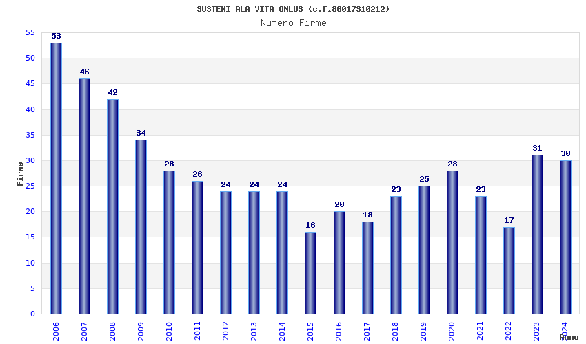 | Anno | Firme | Importi | Media | Naz. | Reg. | Prov. | Comu. |