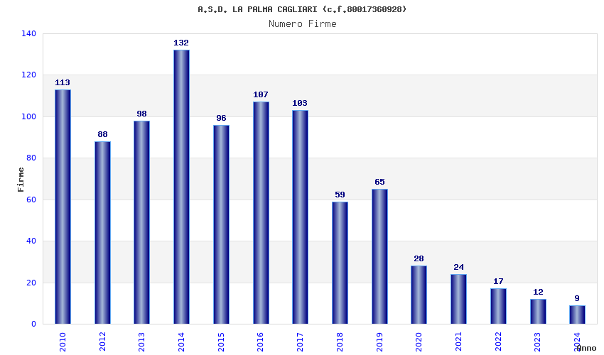 | Anno | Firme | Importi | Media | Naz. | Reg. | Prov. | Comu. |