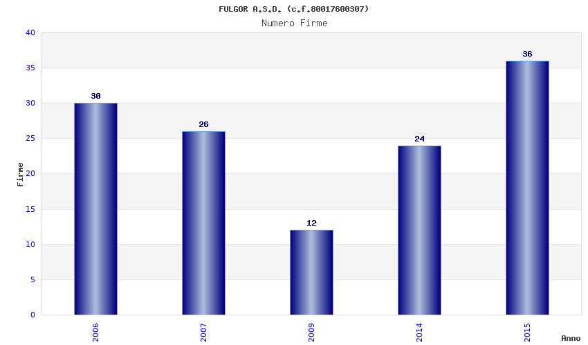 | Anno | Firme | Importi | Media | Naz. | Reg. | Prov. | Comu. |