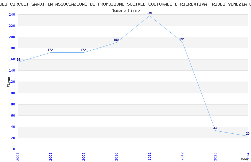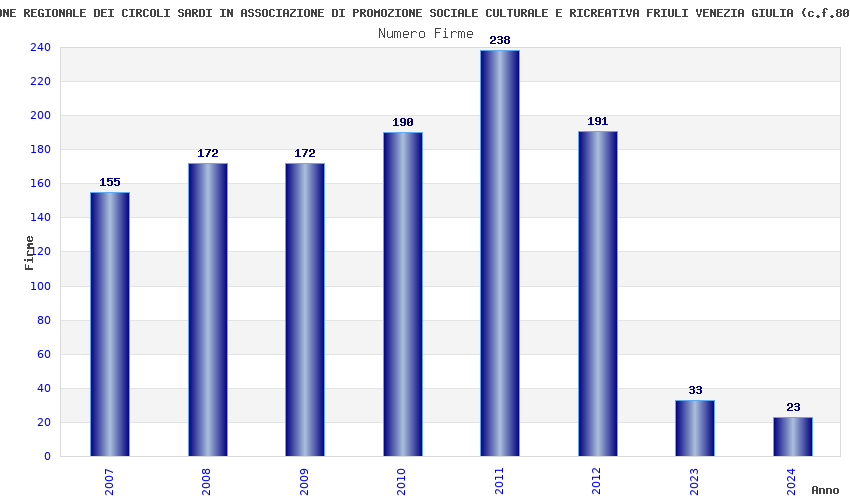 | Anno | Firme | Importi | Media | Naz. | Reg. | Prov. | Comu. |