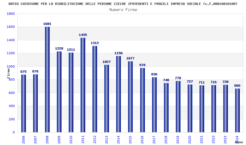 | Anno | Firme | Importi | Media | Naz. | Reg. | Prov. | Comu. |