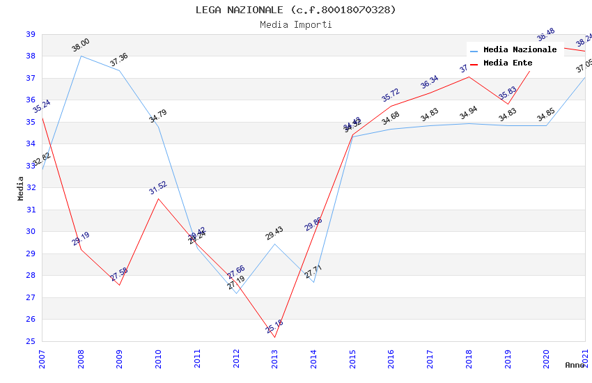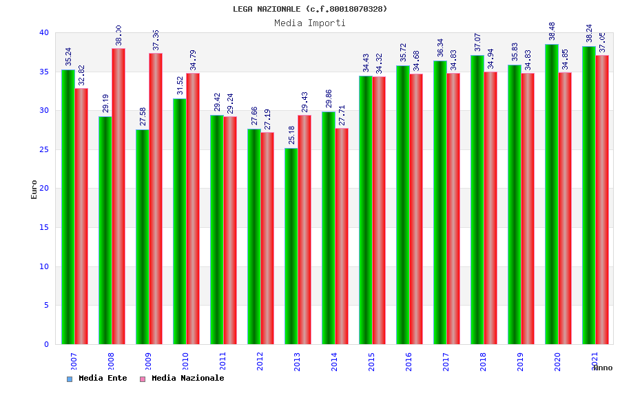 | Anno | Firme | Importi | Media | Naz. | Reg. | Prov. | Comu. |