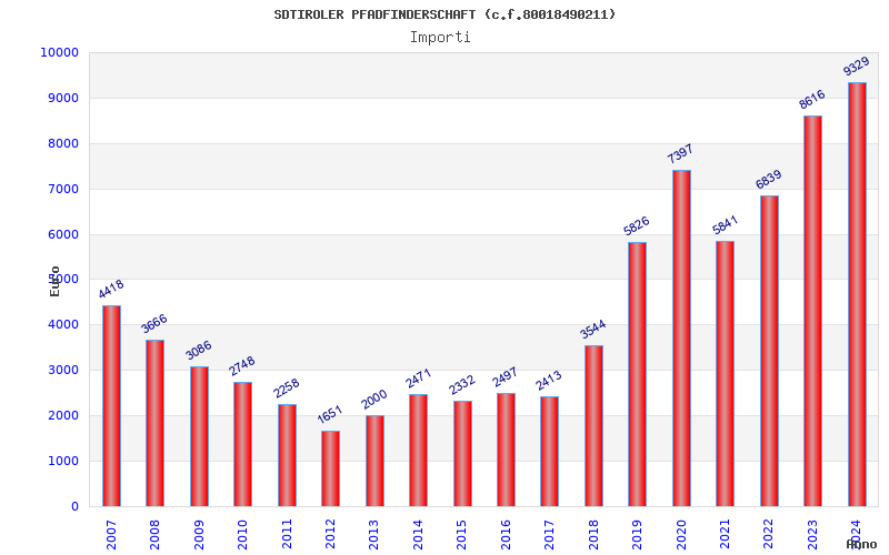 | Anno | Firme | Importi | Media | Naz. | Reg. | Prov. | Comu. |