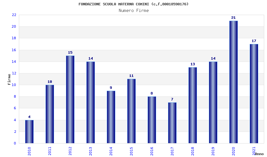 Anno Firme Importi Media Naz. Reg. Prov. Comu.