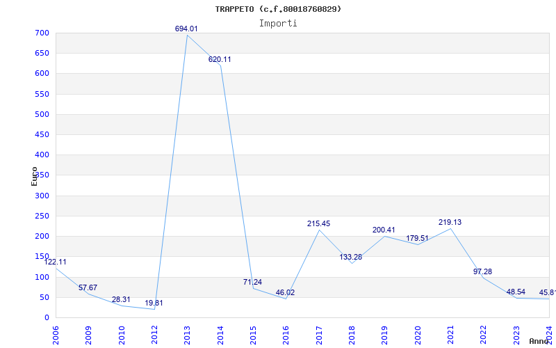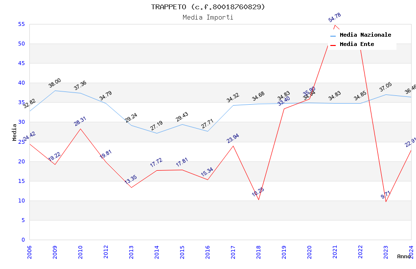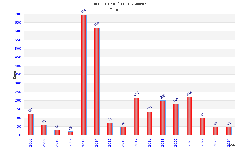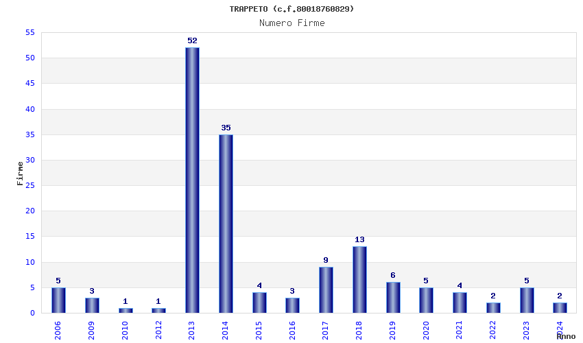 | Anno | Firme | Importi | Media | Naz. | Reg. | Prov. | Comu. |