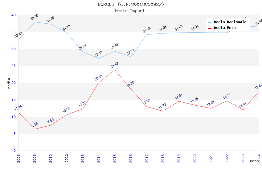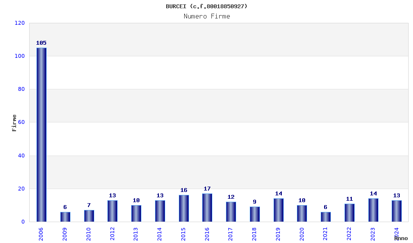 | Anno | Firme | Importi | Media | Naz. | Reg. | Prov. | Comu. |