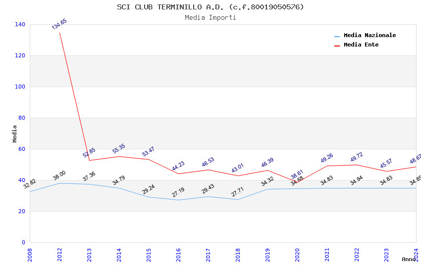 | Anno | Firme | Importi | Media | Naz. | Reg. | Prov. | Comu. |