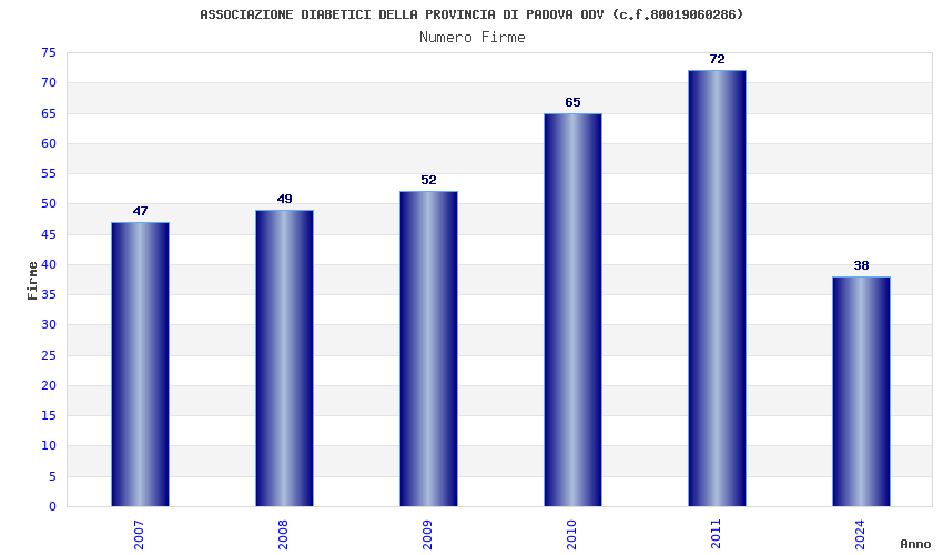 | Anno | Firme | Importi | Media | Naz. | Reg. | Prov. | Comu. |
