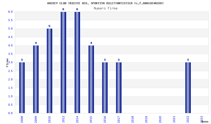 | Anno | Firme | Importi | Media | Naz. | Reg. | Prov. | Comu. |