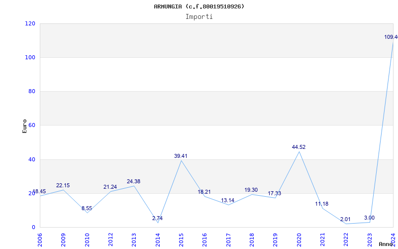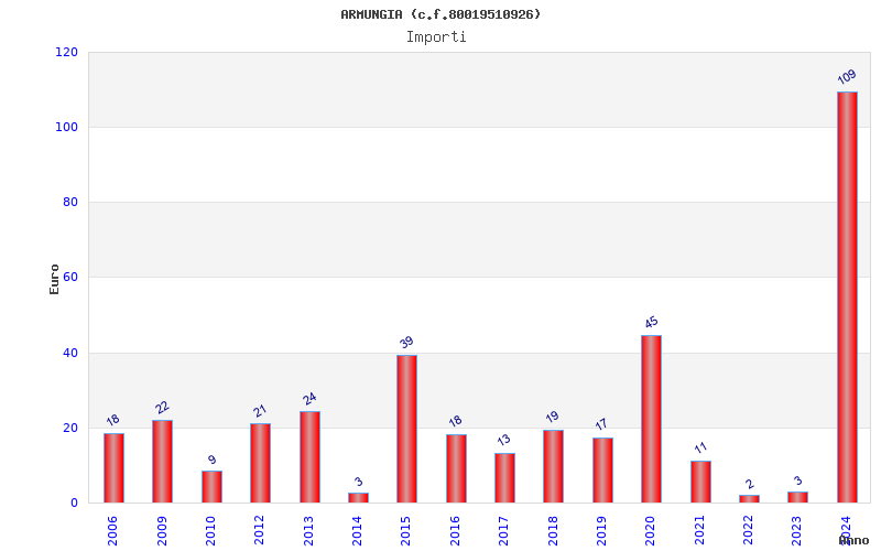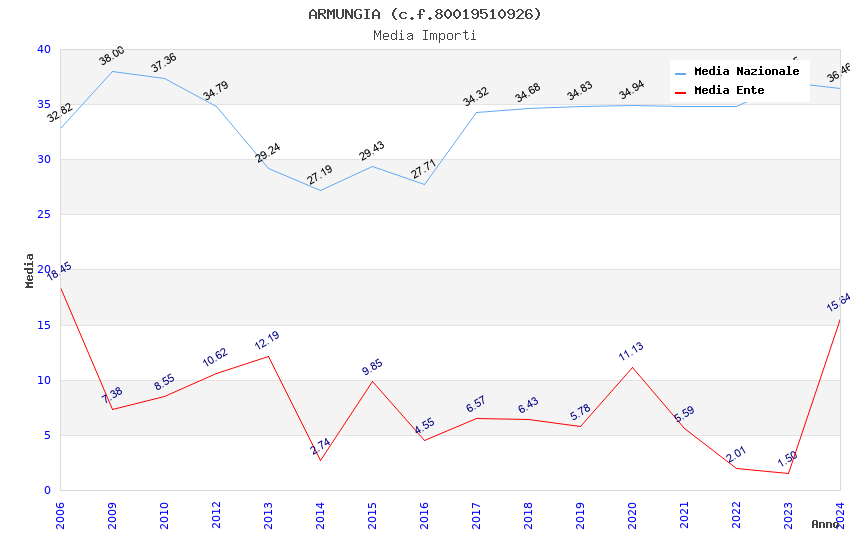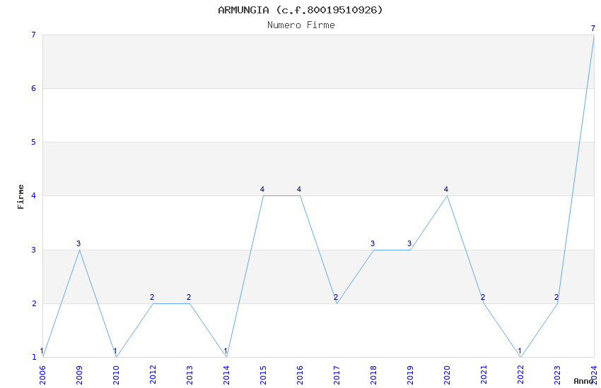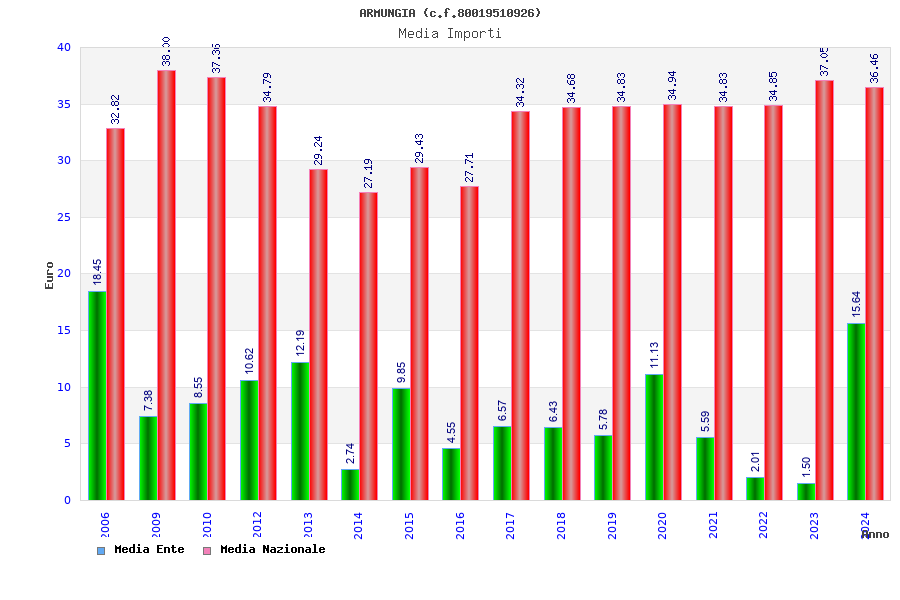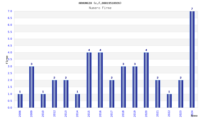 | Anno | Firme | Importi | Media | Naz. | Reg. | Prov. | Comu. |