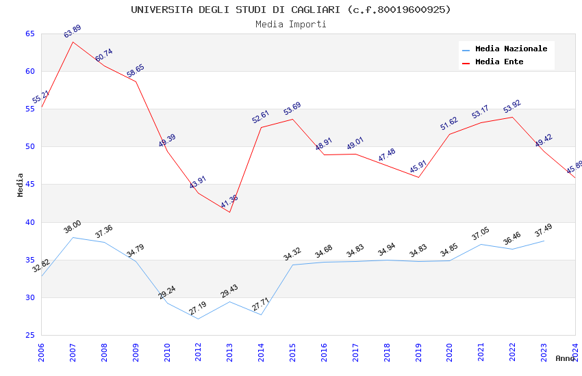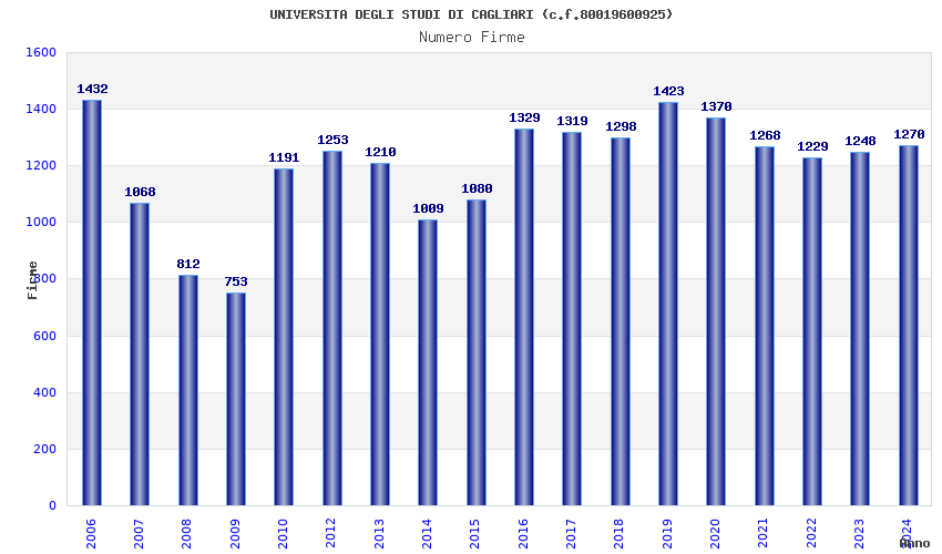 | Anno | Firme | Importi | Media | Naz. | Reg. | Prov. | Comu. |