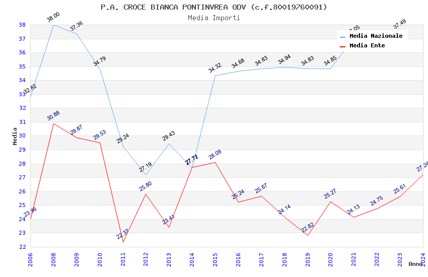 | Anno | Firme | Importi | Media | Naz. | Reg. | Prov. | Comu. |