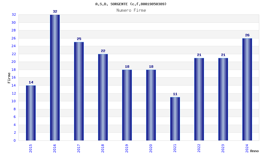 | 2015 | 14 | 324,77 | 23,20 | 43.384 | 3.856 | 263 | 9 |