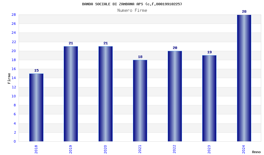 | Anno | Firme | Importi | Media | Naz. | Reg. | Prov. | Comu. |