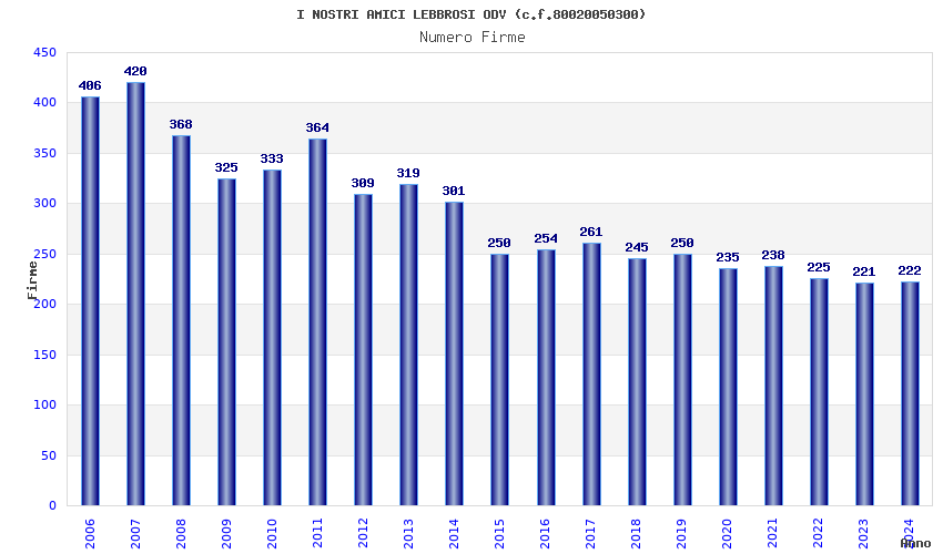 | Anno | Firme | Importi | Media | Naz. | Reg. | Prov. | Comu. |