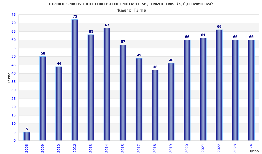 | Anno | Firme | Importi | Media | Naz. | Reg. | Prov. | Comu. |
