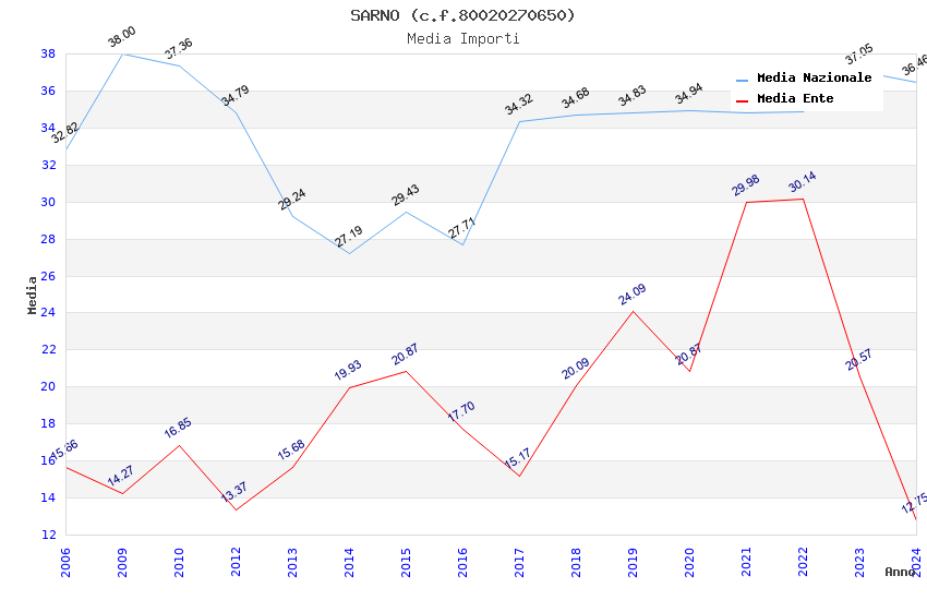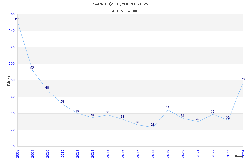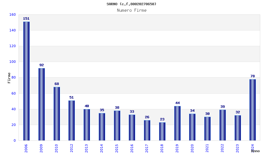 | Anno | Firme | Importi | Media | Naz. | Reg. | Prov. | Comu. |