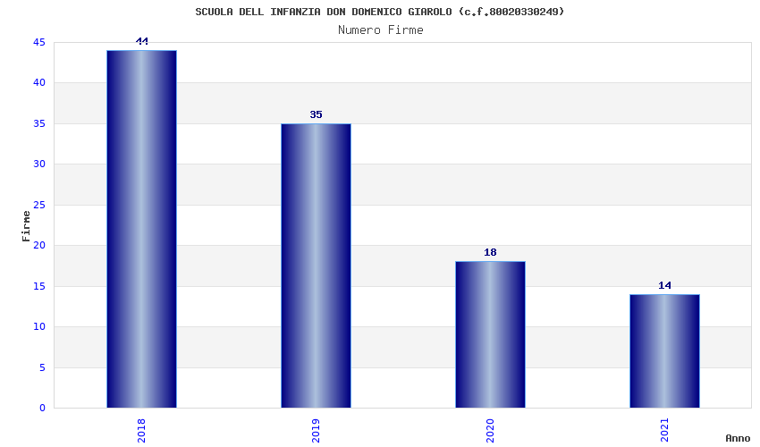 | Anno | Firme | Importi | Media | Naz. | Reg. | Prov. | Comu. |
