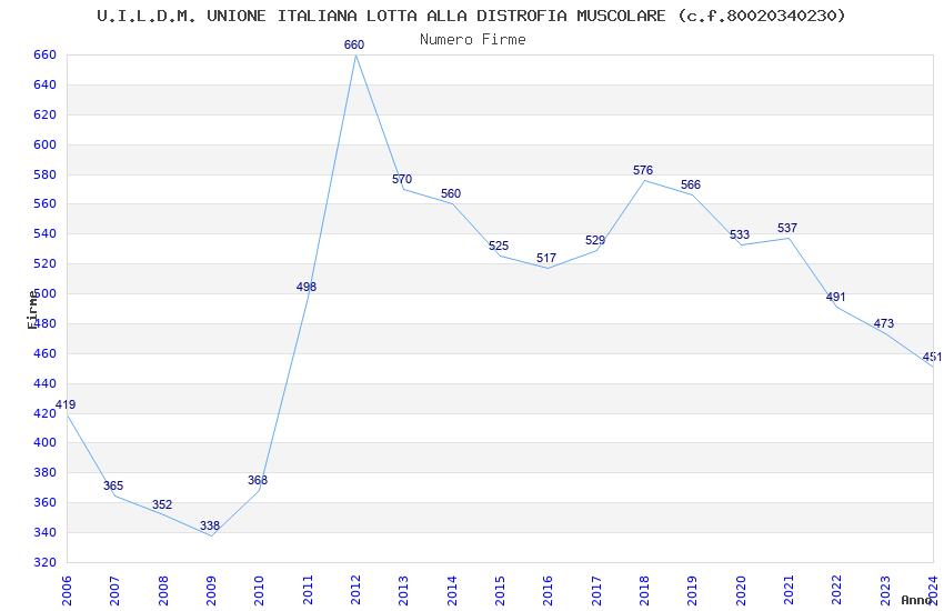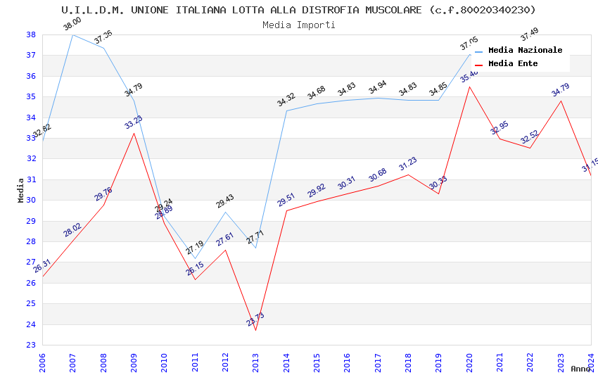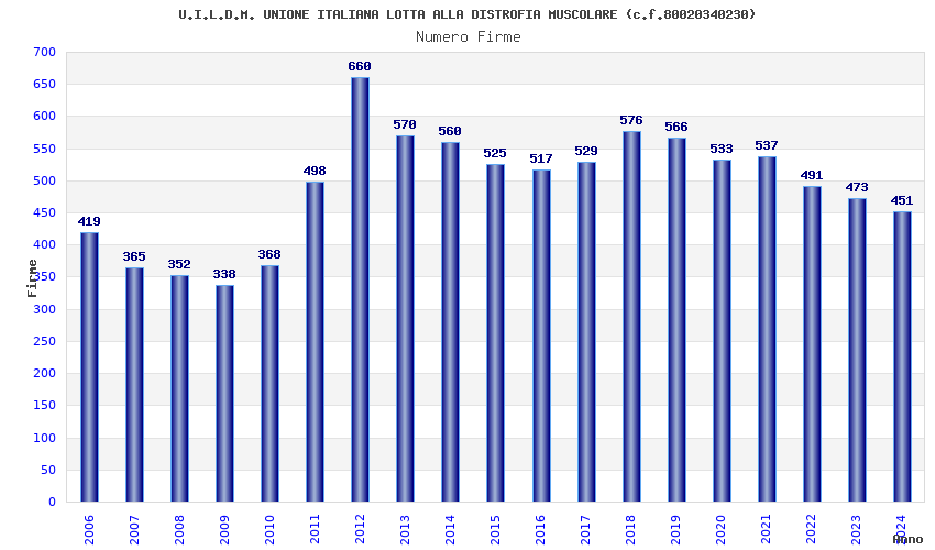 | Anno | Firme | Importi | Media | Naz. | Reg. | Prov. | Comu. |