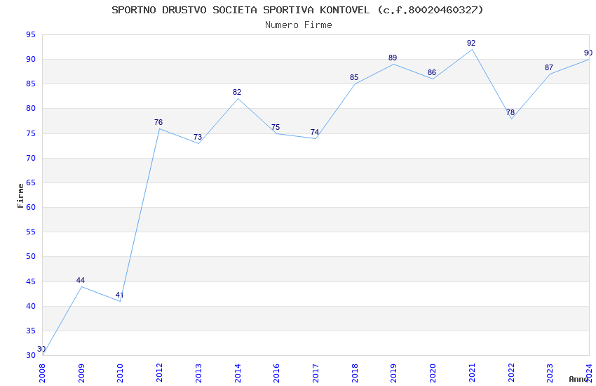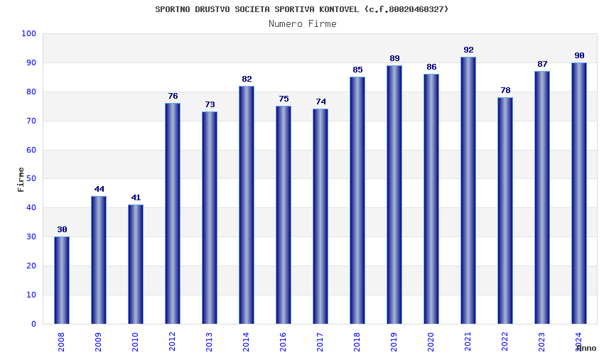 | 2021 | 92 | 3.555,67 | 38,65 | 15.167 | 323 | 68 | 60 |