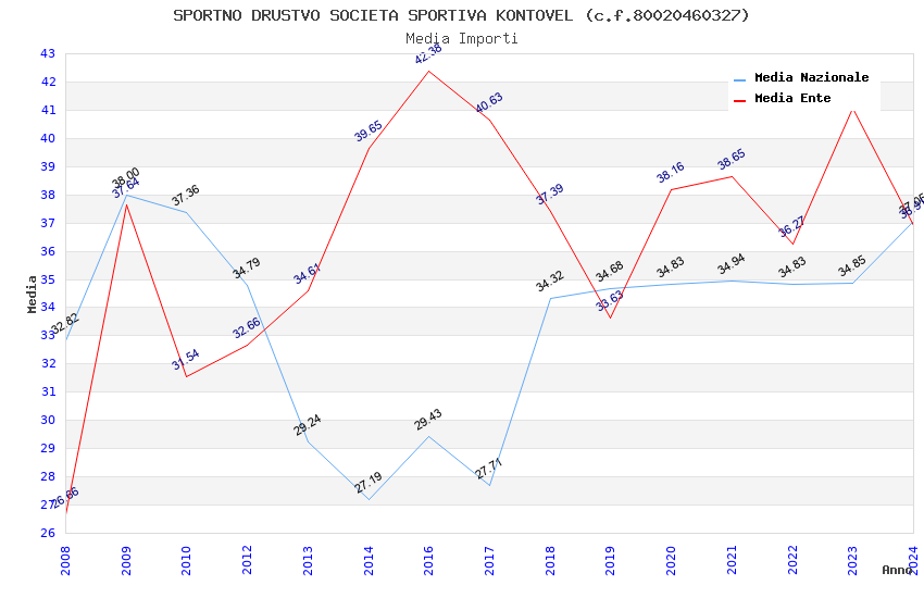| Anno | Firme | Importi | Media | Naz. | Reg. | Prov. | Comu. |
