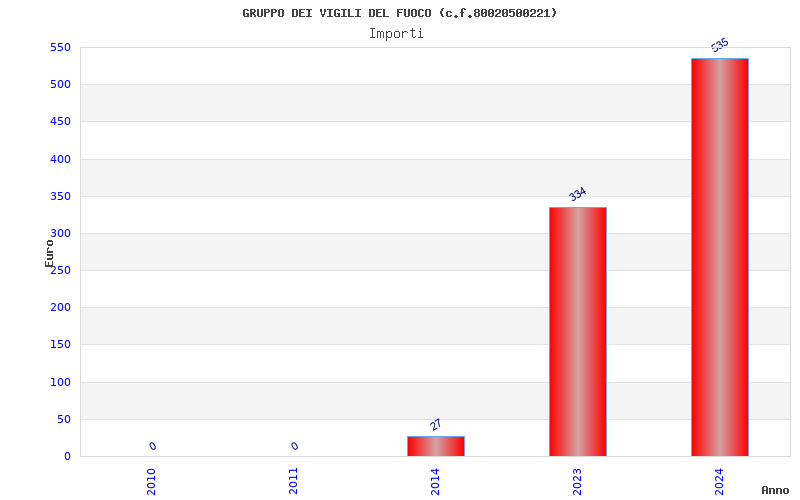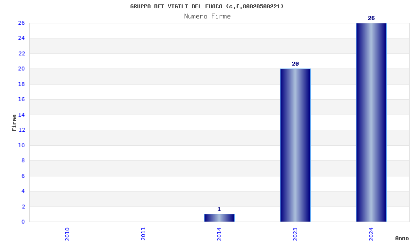 | Anno | Firme | Importi | Media | Naz. | Reg. | Prov. | Comu. |